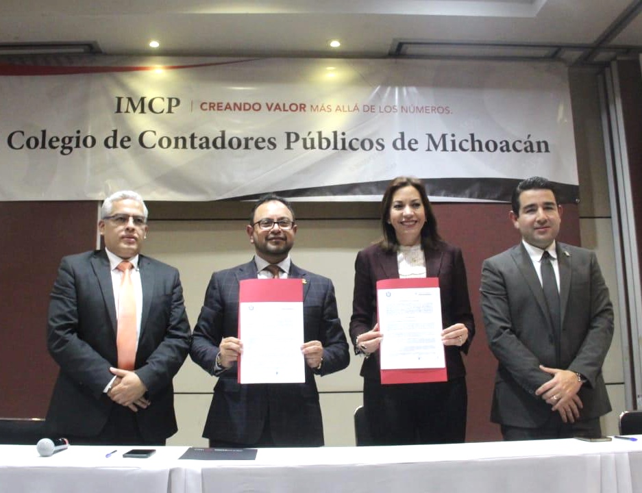 Morelia, Mich. a 7 de febrero de 2020.- Con la finalidad de continuar sumando esfuerzos en beneficio de los estudiantes michoacanos, en el Colegio de Contadores Públicos del Estado de Michoacán (CCPM), se realizó la firma del convenio de colaboración con la Universidad Latina de América (UNLA).