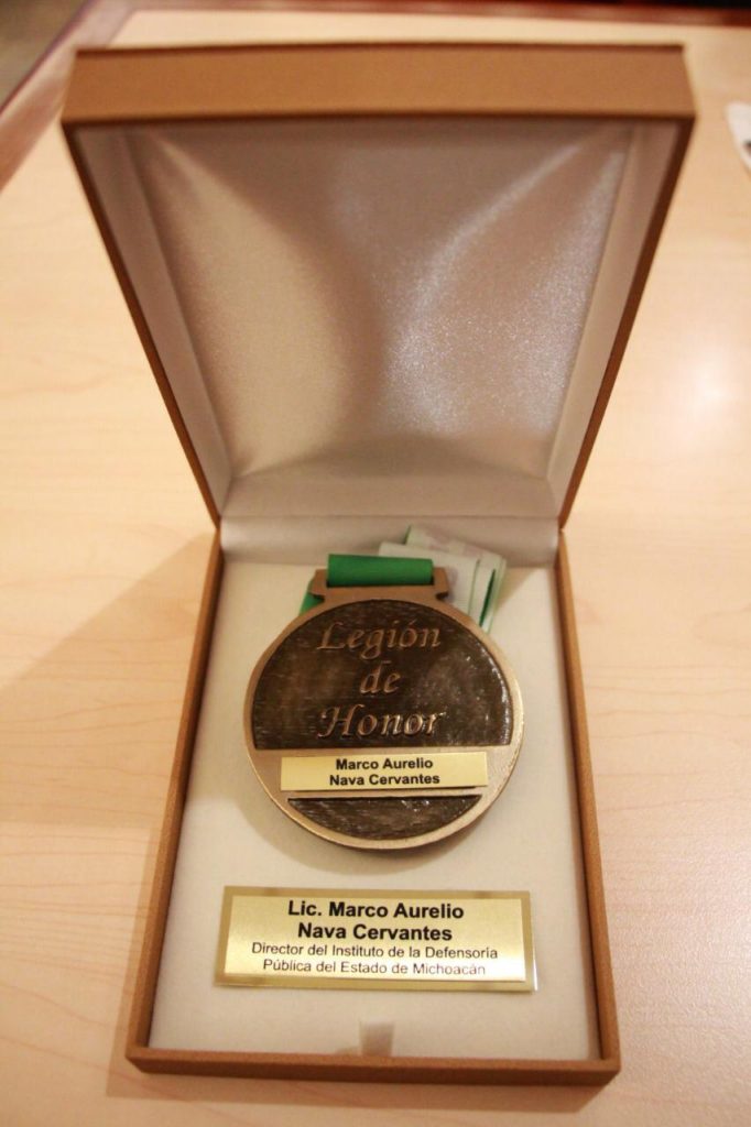 Otorgan la condecoración Legión de Honor a Marco Aurelio Nava, Director del Instituto de la Defensoría Pública de Michoacán