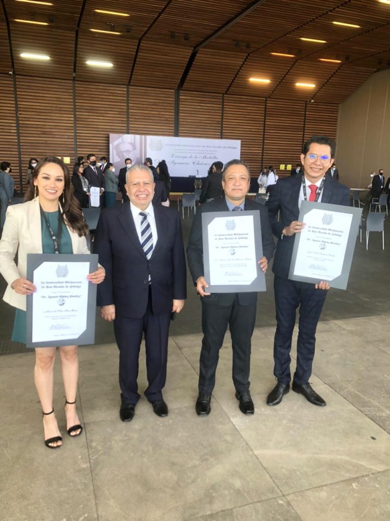 Galeana Figueroa, felicitó a los alumnos de Posgrado de Maestría en Administración y Fiscal, María del Pilar Meza Bucio y José Uriel Ramírez Pineda, por haber recibido la Presea Dr. Ignacio Chávez Sánchez, 2020; la Universidad Michoacana entrega el galardón a estudiantes con destacados conocimientos y aptitudes. También fue reconocido Moisés Salvador Becerra Medina, profesor de la institución